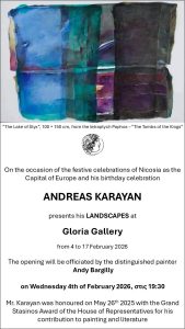 The exhibition will be hosted at Gloria Gallery and will run from 4 to 17 February 2026, offering the public the opportunity to experience a new body of work by one of Cyprus’ most influential contemporary artists.