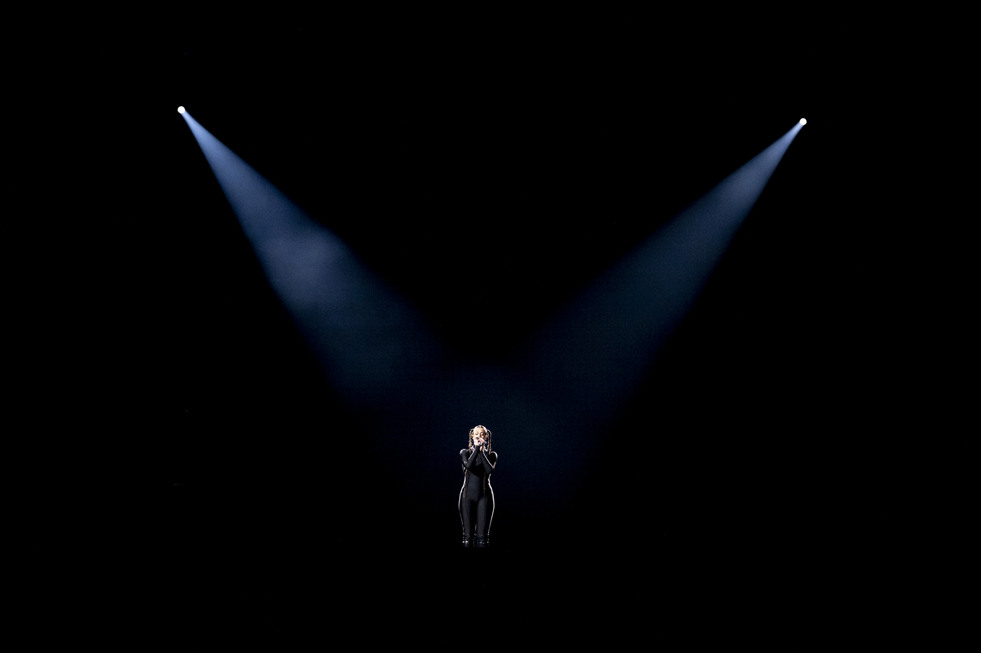 Hera Björk rehearsing Scared of Heights for Iceland at the First Rehearsal of the First Semi-Final at Malmö Arena