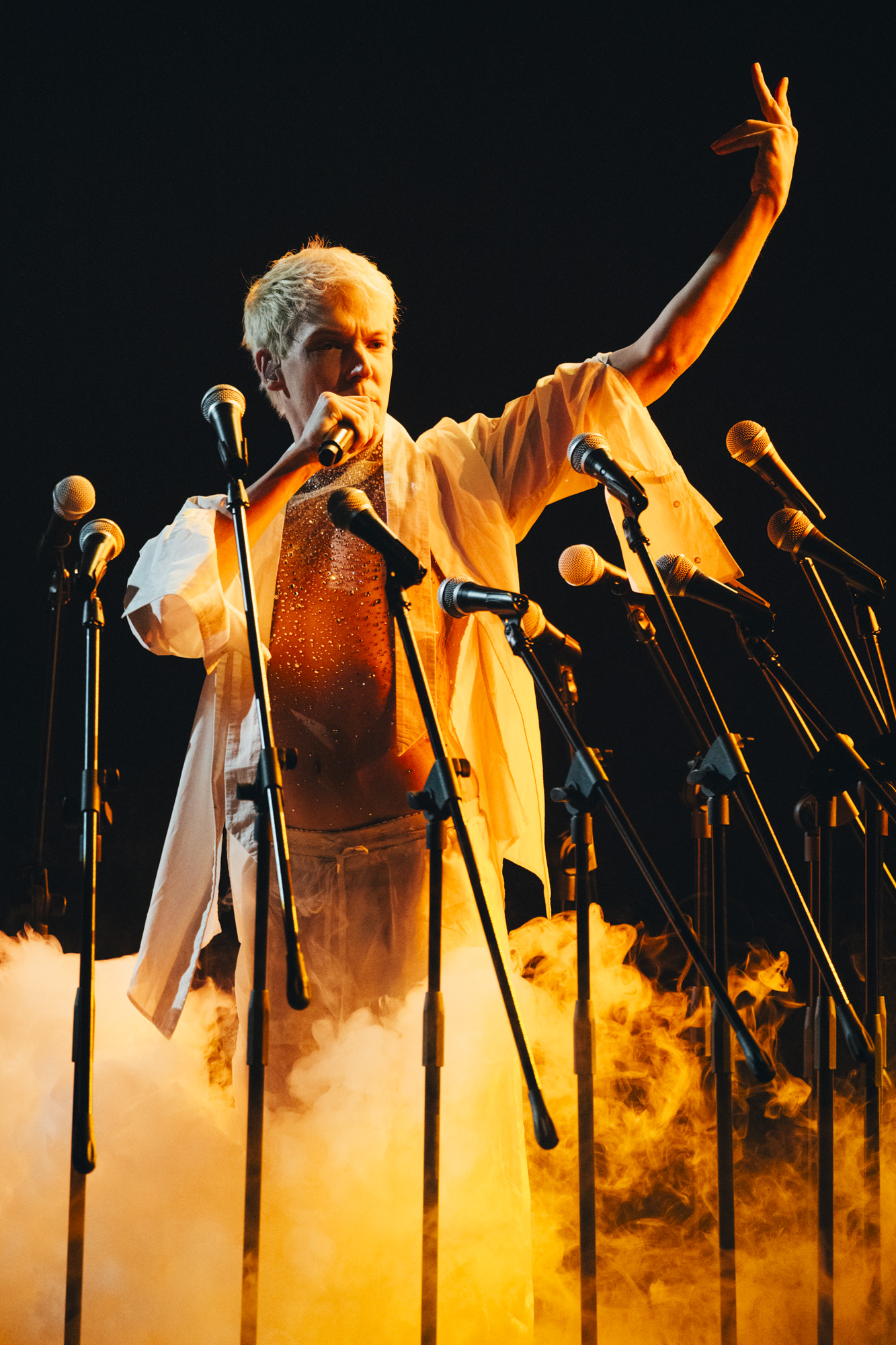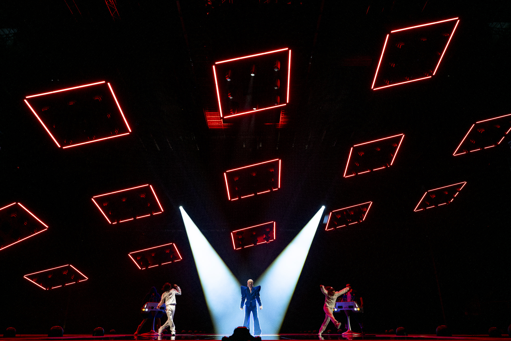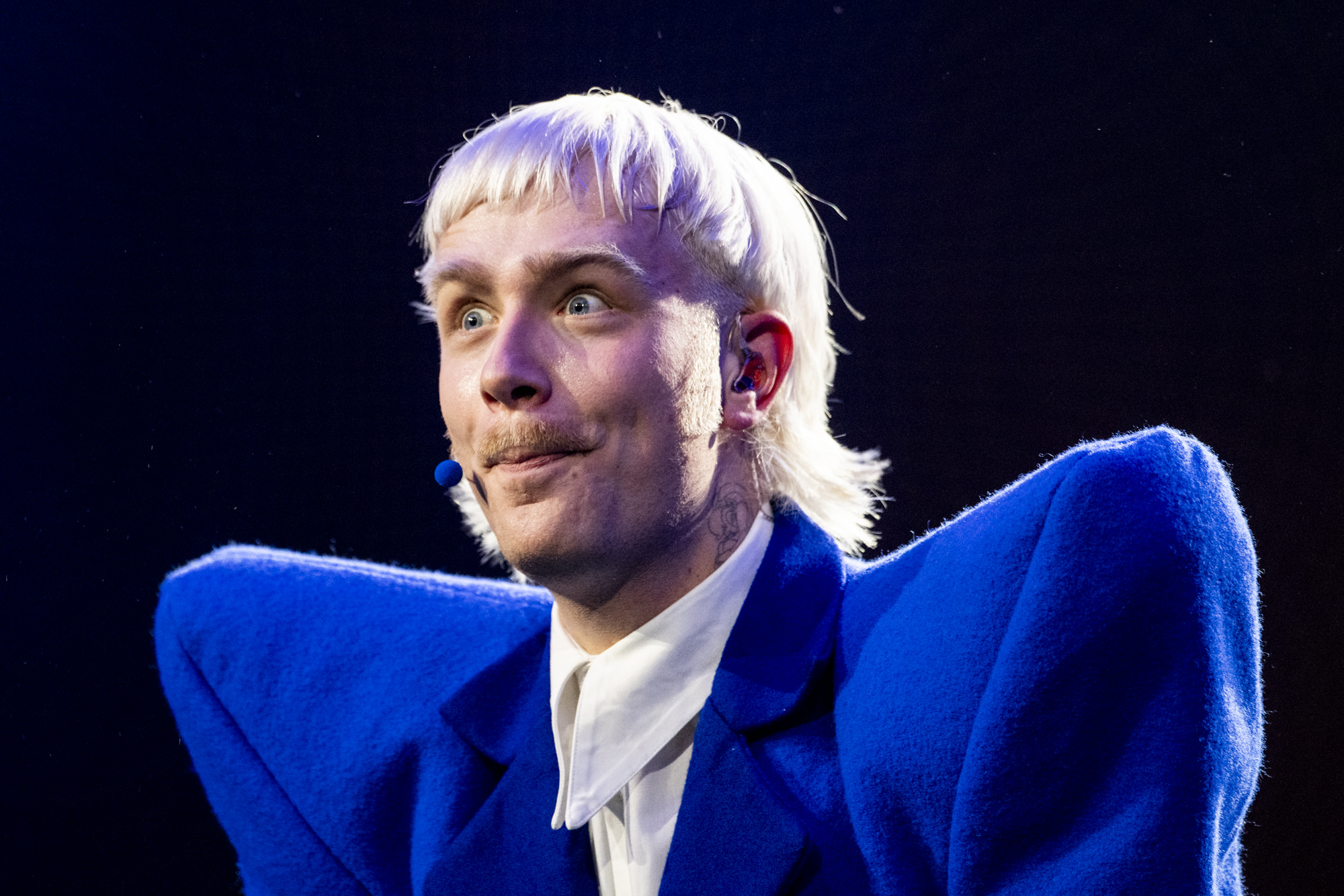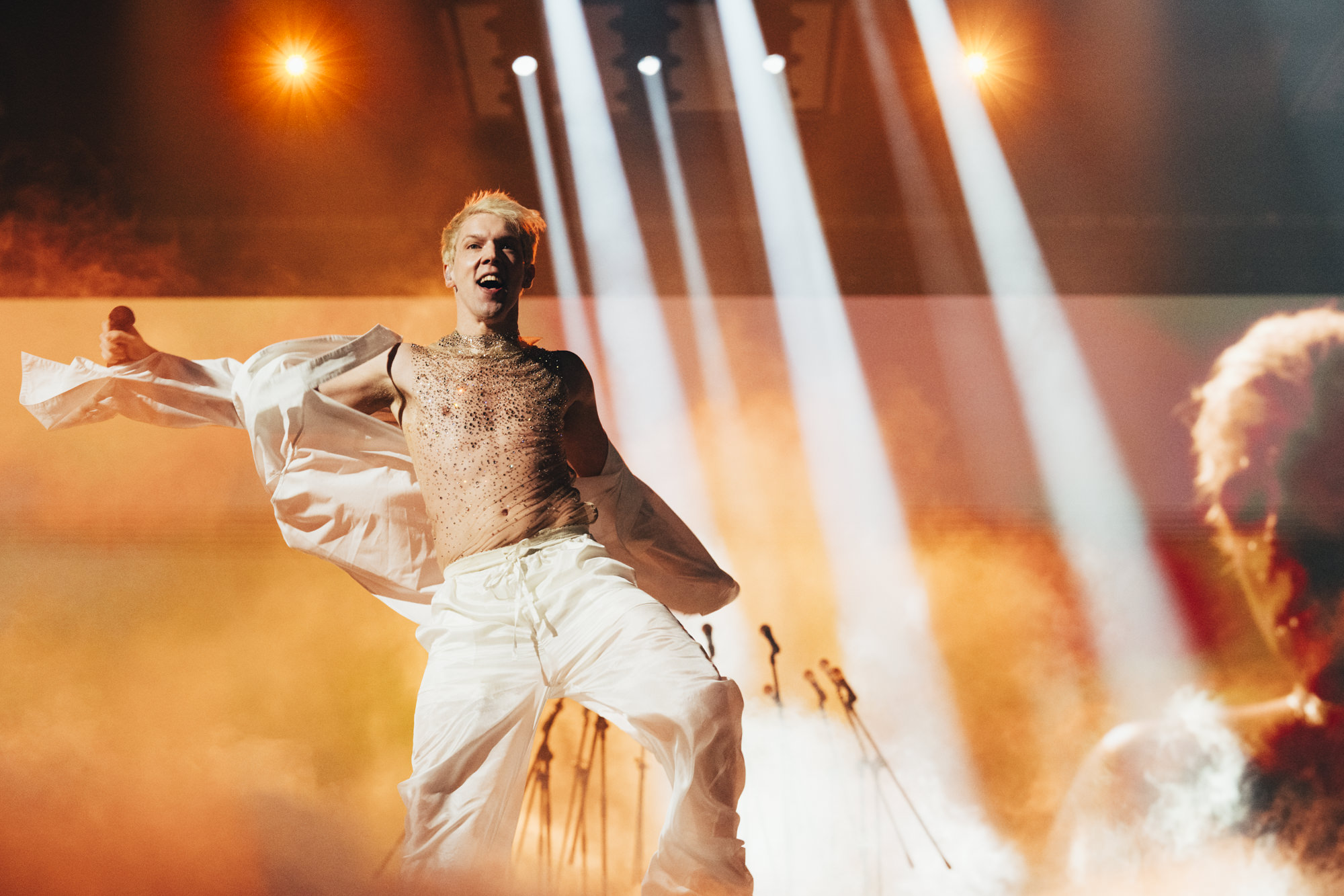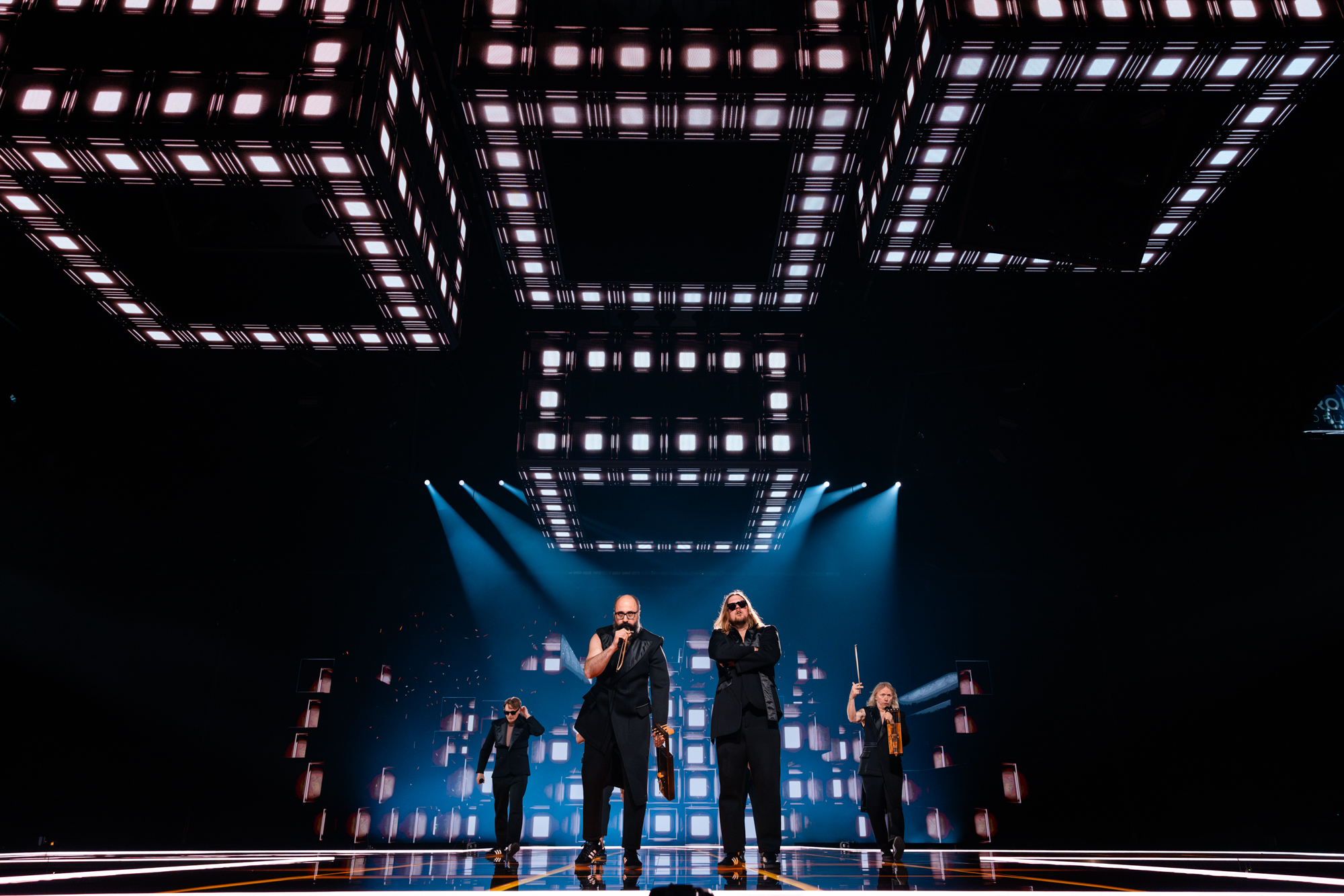 Mustii rehearsing Before The Party’s Over for Belgium at the First Rehearsal of the Second Semi-Final at Malmö Arena