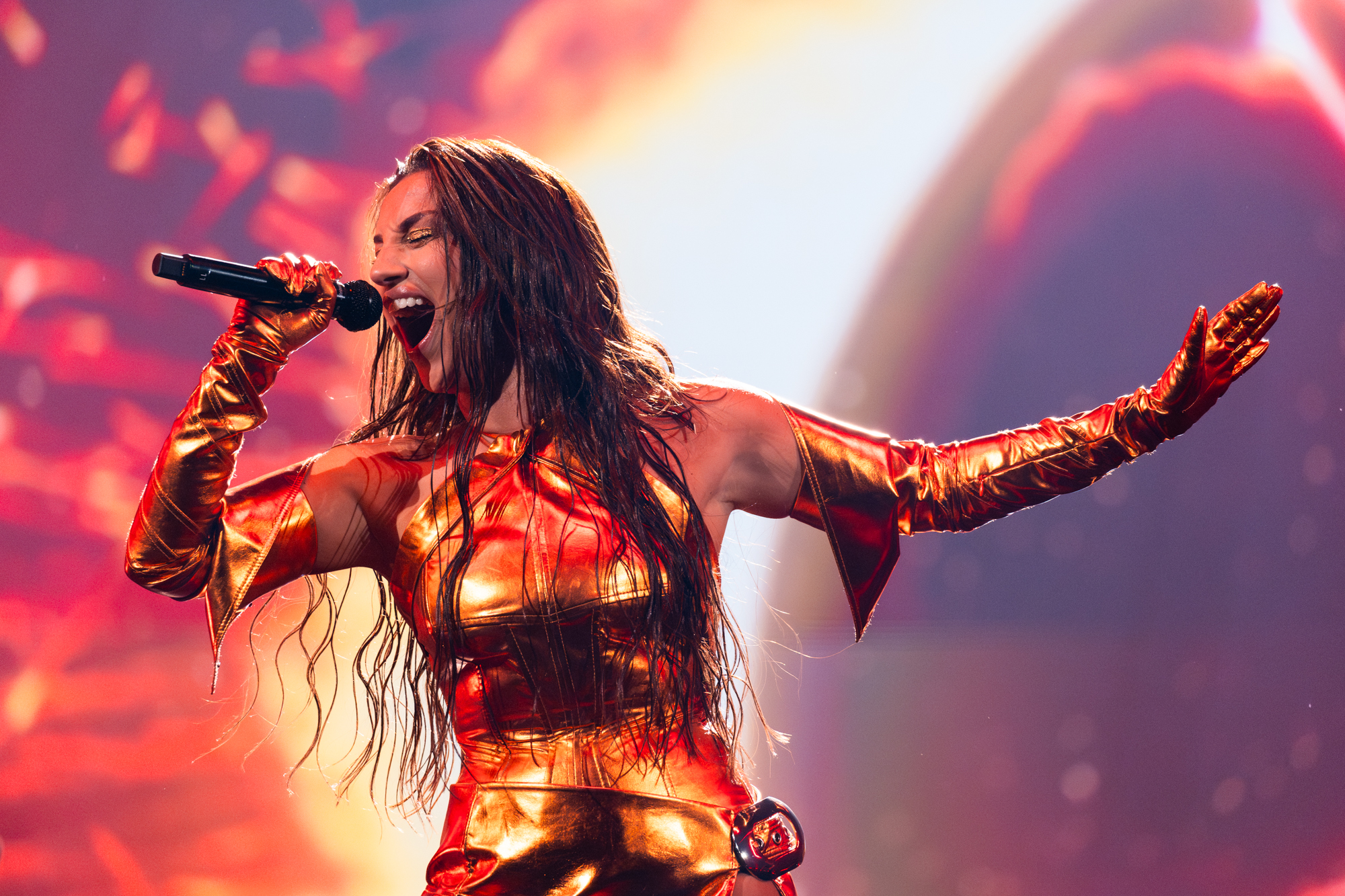Nutsa Buzaladze rehearsing Firefighter for Georgia at the First Rehearsal of the Second Semi-Final at Malmö Arena