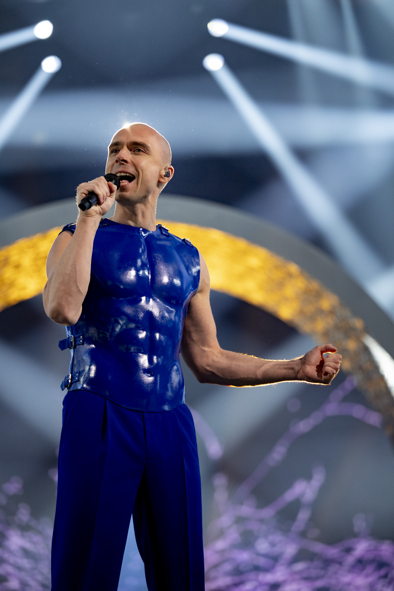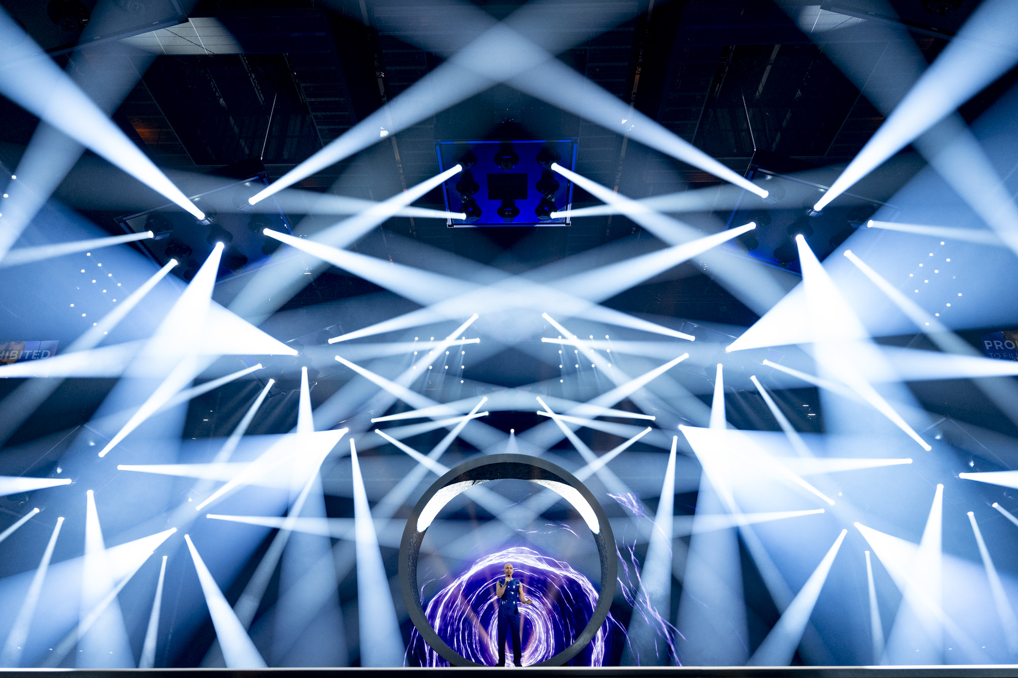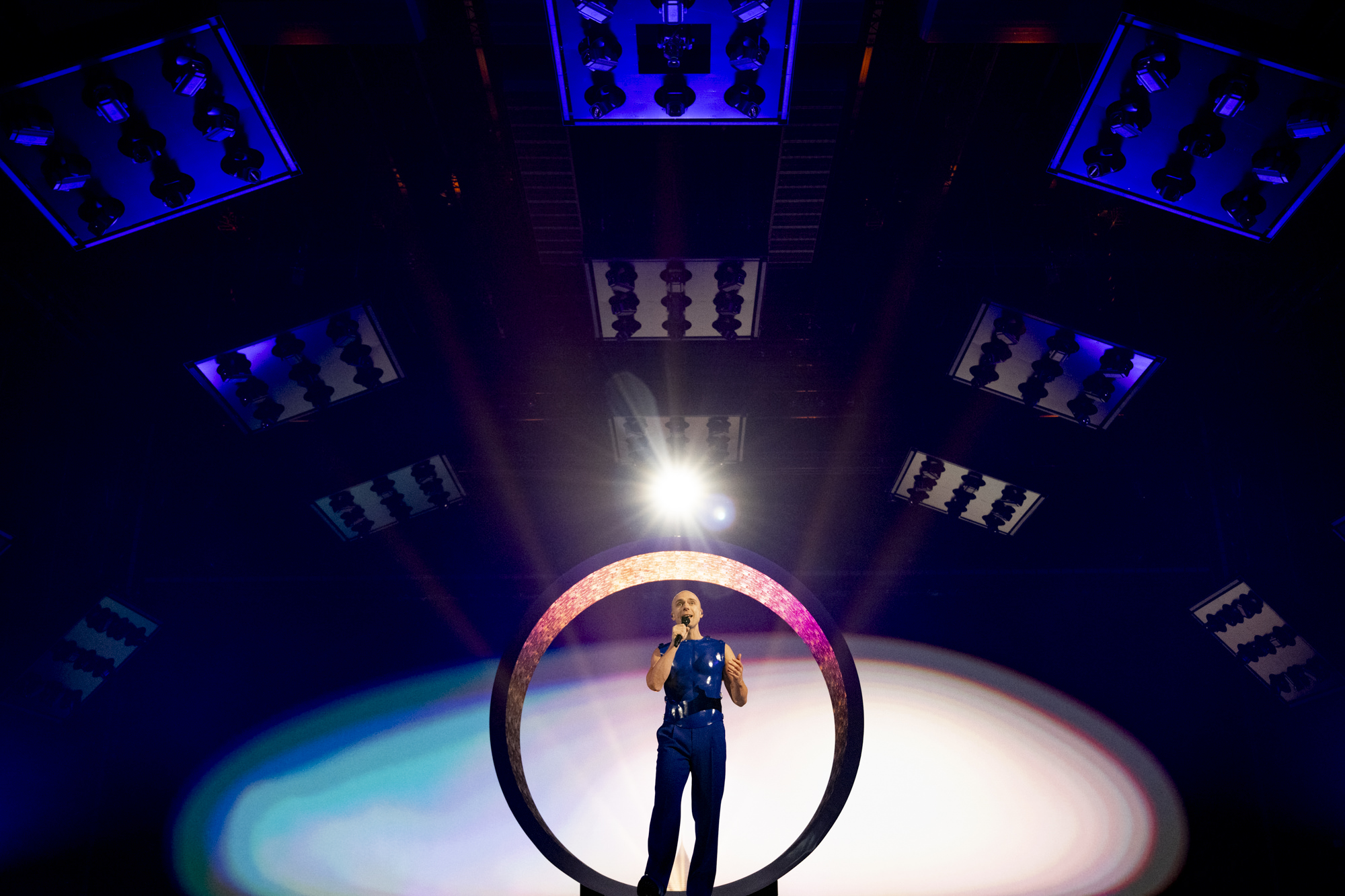 Joost Klein rehearsing Europapa for Netherlands at the First Rehearsal of the Second Semi-Final at Malmö Arena