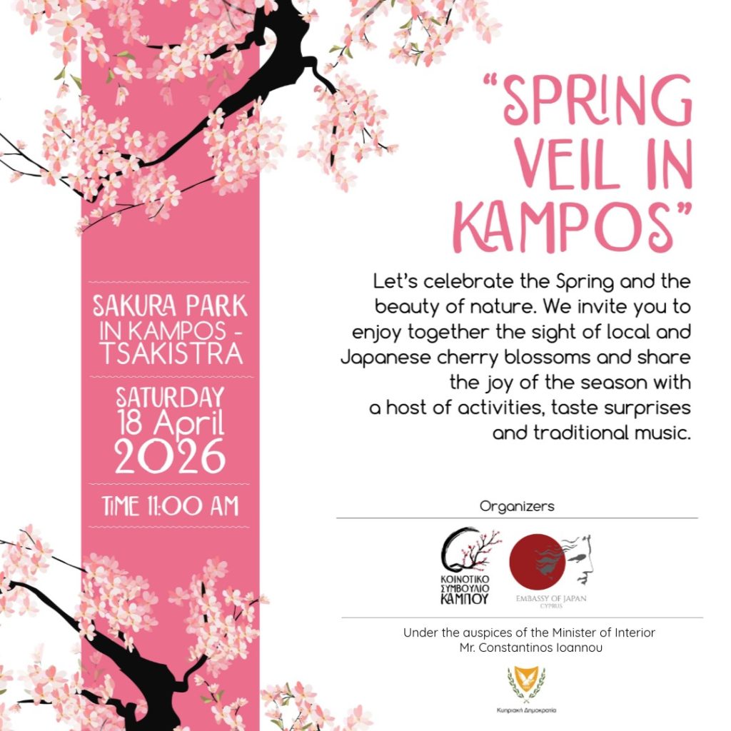 Το Blossom Festival at Kampos Sakura Park, που θα πραγματοποιηθεί το Σάββατο 18 Απριλίου 2026 στις 11:00 π.μ., φέρνει στο προσκήνιο την ομορφιά της άνοιξης και την πολιτιστική σύνδεση Κύπρου και Ιαπωνίας, σε μια διοργάνωση που συνδυάζει αισθητική, γαστρονομία και παράδοση.