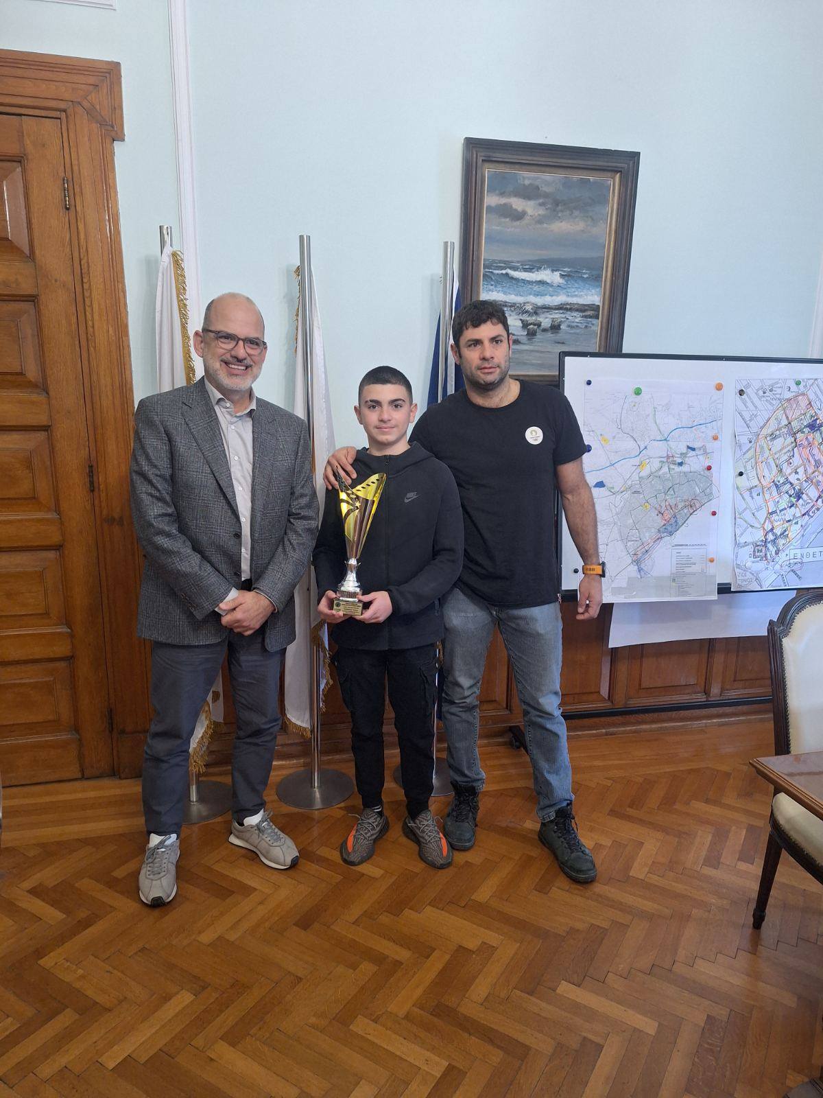 Σε μια συγκινητική τελετή, ο Δήμαρχος Λεμεσού, κ. Γιάννης Αρμεύτης, βράβευσε σήμερα τον αθλητή του παρακαγιάκ Παναγιώτη Τυρίμου, έναν νεαρό μαχητή που αποτελεί φωτεινό παράδειγμα για όλους, αποδεικνύοντας έμπρακτα πως καμία δυσκολία δεν μπορεί να σταθεί εμπόδιο στη θέληση και τα όνειρα.