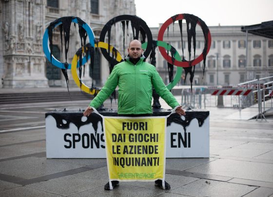 Milan, Italy – This morning, Greenpeace Italy activists placed a large installation depicting the Olympic Rings dripping oil and the…